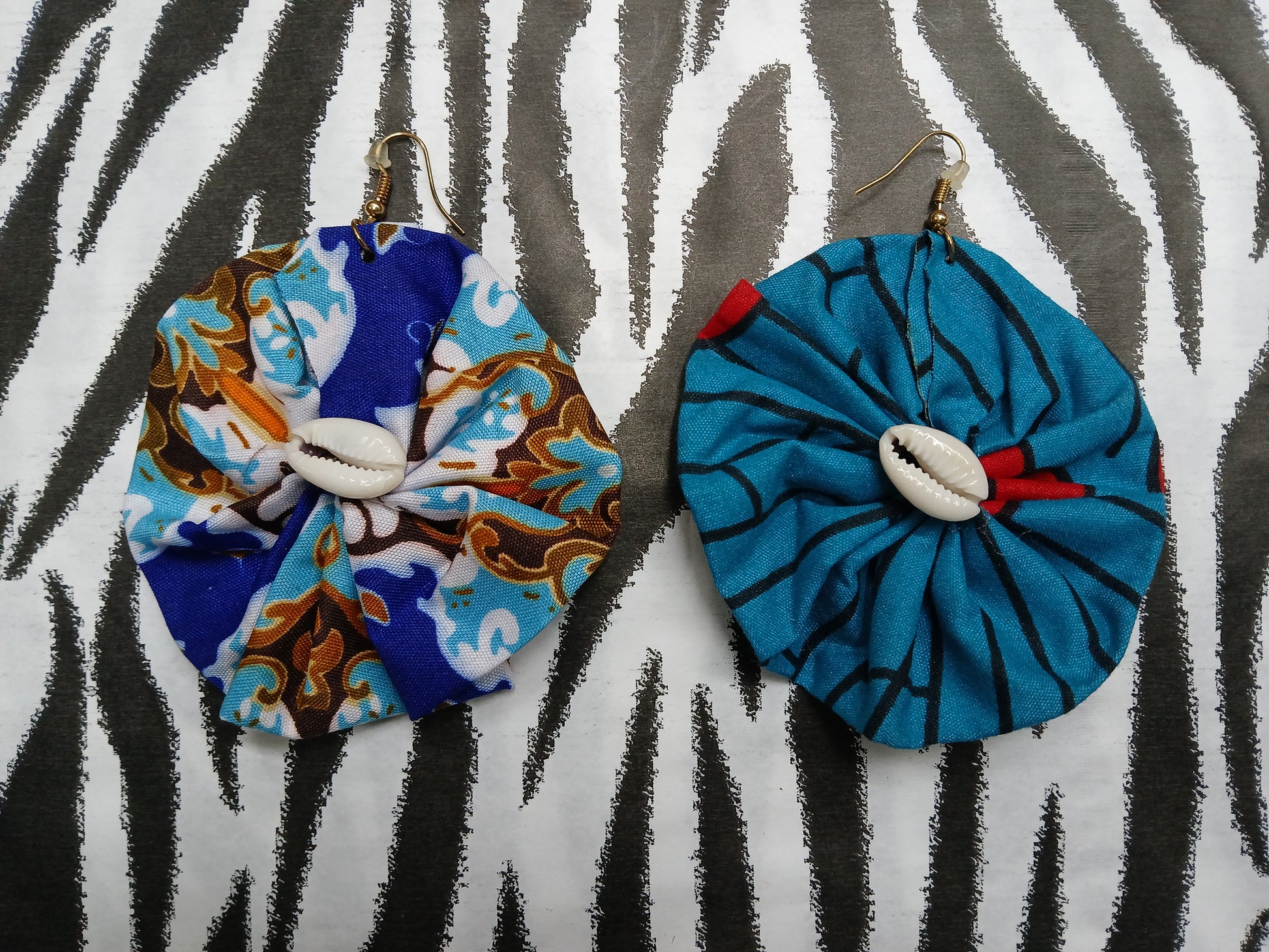 Ankara & Cowrie Earrings