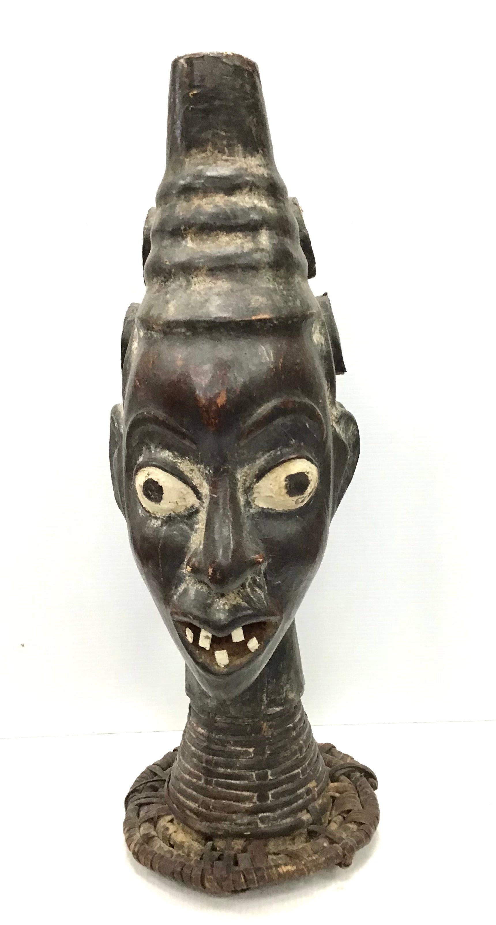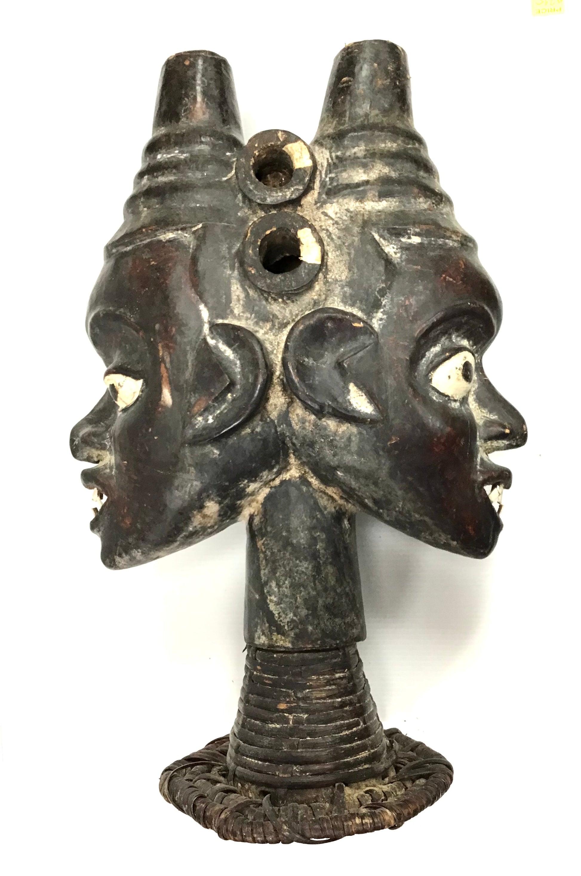 Unveil the captivating duality of Ekoi Ejagham culture with our meticulously crafted Janus Head Crest, hailing from Nigeria. This extraordinary piece of African art is a testament to the Ekoi Ejagham people's rich cultural heritage. Carved with remarkable detail and artistic precision, the Janus Head Crest features two opposing faces, symbolizing the delicate balance between the seen and the unseen worlds. As a representation of ancestral spirits and guardian forces, this crest stands as both a work of art and a spiritual emblem. Its intricate carvings and intricate detailing invite you to delve into the complexities of African symbolism and tradition. Whether you're an art collector, enthusiast, or simply appreciate the depth of culture, this Janus Head Crest is a captivating and unique addition to any space, serving as a bridge between the past and the present, and a testament to Nigeria's artistic and spiritual legacy.