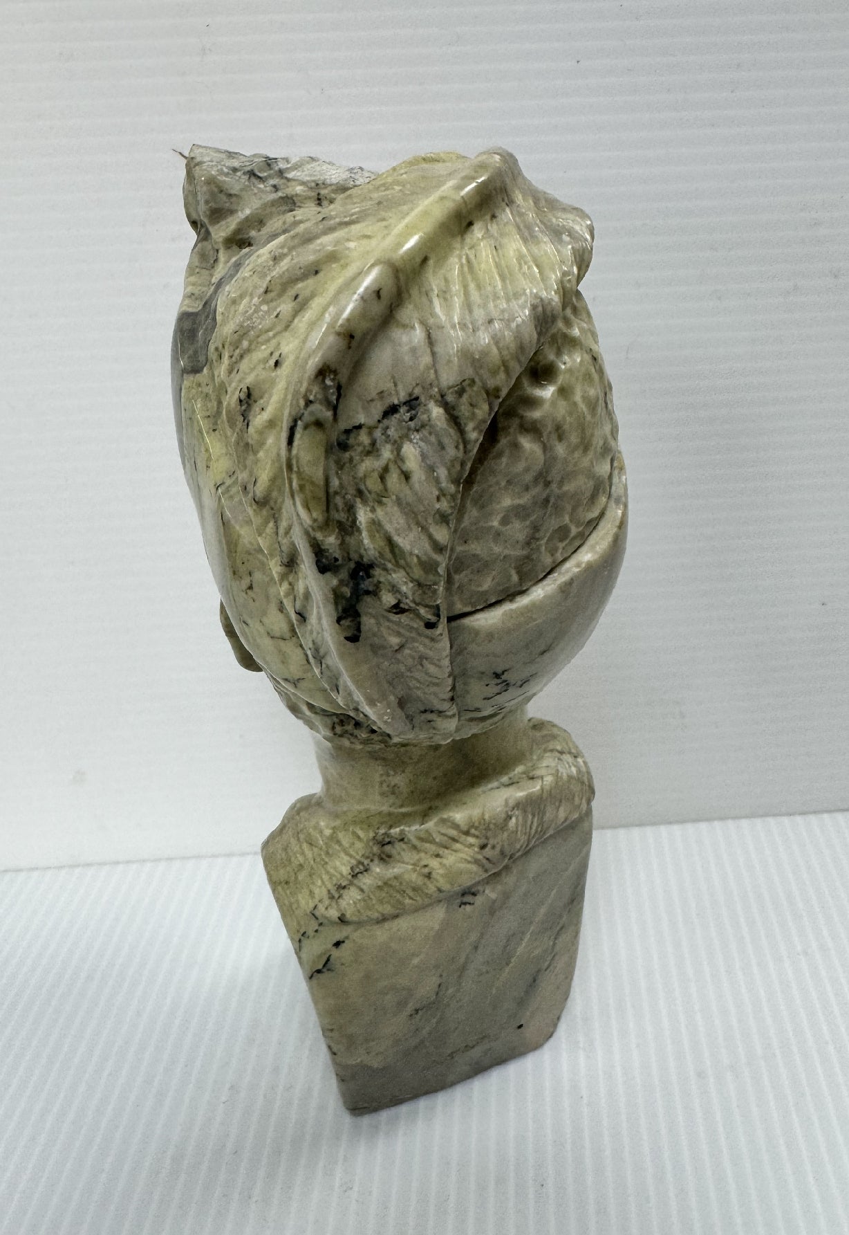 Handmade in Zimbabwe this "Mzee" serpentine sculpture features a village elder, showcasing the craftsmanship and ancient cultural wisdom of the skilled artisans.